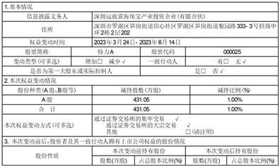 深圳市特力(集团)股份有限公司(以下简称“公司”或“本公司”)于2023年6月15日收到抓有本公司5%以上股份的推动深圳远致富海珠宝产业投资企业(有限合资)(以下简称“远致富海”)发来的《对于减抓特力A股份阐发情况的陈述函》。2023年3月24日-2023年6月14日历间,远致富海累计减抓本公司股份占公司总股本的1%。减抓细则如下: